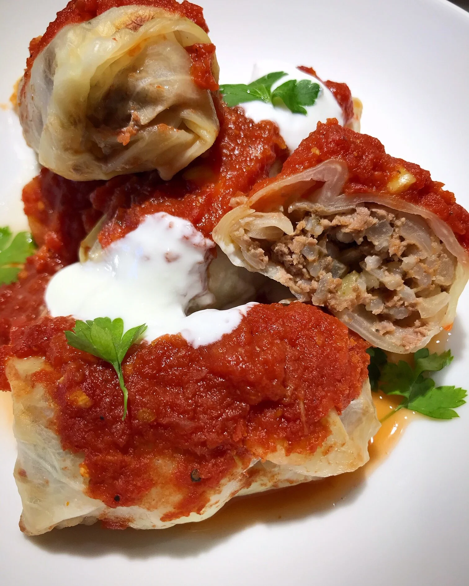 Lamb Cabbage Rolls + Curried Tomato Sauce